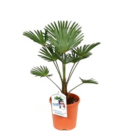 De Trachycarpus is een winterharde palm, die zelfs de Nederlandse en Belgische winters buiten overleeft.