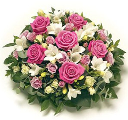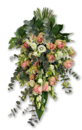 Rouwboeket in roze/ wit ,groene tinten