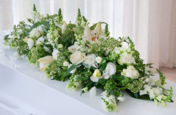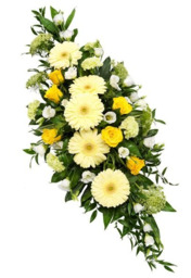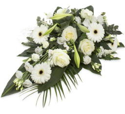Wit rouwboeket met diverse bloemen